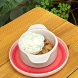 Cookie cuit minute, servi chaud avec une boule de glace aux choix. Prévoir 10/15 min d'attente.