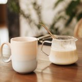 Hojicha infusé dans du lait (léger goût de chataigne et noisette). Cliquez pour voir les options.