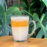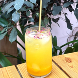Purée de fruits passion, eau gazeuse et une bonne dose de gingembre. Cliquez pour voir les options.