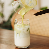 Matcha infusé dans du lait et avec quelques glaçons. Cliquez pour voir les options.