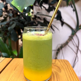 Matcha servi avec de l'eau gazeuse et une purée de fruit aux choix. Cliquez pour voir les propositions. Cliquez pour voir les options.